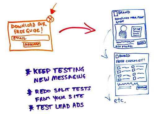 We can keep testing messaging. So if we are testing messaging on our site, we might take the top two or three and test that messaging on ads. We might find that different messaging works better on social than it does on pop-ups or banners on the site. So it's worth redoing split tests that seemed conclusive on your site because things might be different on the social media network.